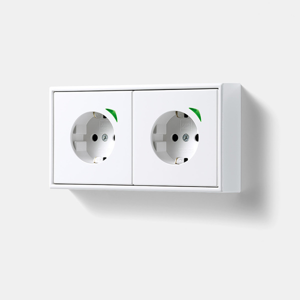 Einige Unterputzgeräte benötigen eine tiefe Gerätedose wie die SCHUKO® Steckdosen mit USB-Anschlüssen oder die smarten SCHUKO® Steckdosen von JUNG HOME. Die Lösung: Der Rahmen mit 28-mm-Aufbauhöhe im JUNG Design. Der Rahmen mit einer Aufbauhöhe von 28 mm ist die Lösung, um vor Ort einen erweiterten Anschlussraum sicherzustellen. Der Rahmen und der Adaptertragring von JUNG gewährleisten den normativ geforderten Freiraum von 8 Millimetern zwischen Gehäuseboden und dem Gerätedosenboden.